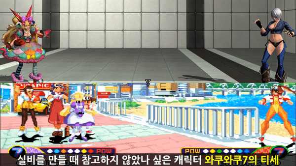 아래는 옛날에 MVS기판으로 출시가 됐었던 와쿠와쿠7이라는 게임과 비교한 움짤입니다.